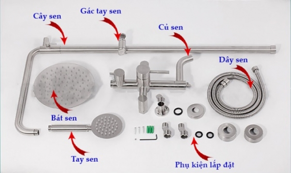 Bát sen tắm (linh kiện đi kèm) thường được làm bằng nhựa ABS bởi chúng khá nhẹ, an toàn khi sử dụng. Chẳng may người dùng làm rơi cũng không ảnh hưởng tới thiết bị xung quanh. Một số sản phẩm vòi hoa sen hiện nay được làm từ inox 304 không rỉ với độ bền cao.